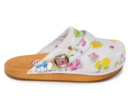 Anticelulitidní dřeváky CE1 Bílé s kvítky