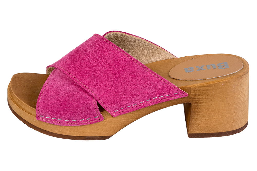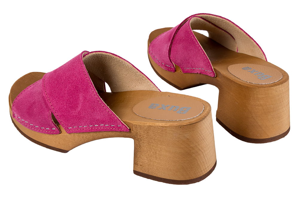 Dámské dřeváky BUXA OS86A – fuchsiové semišové platformové dřeváky