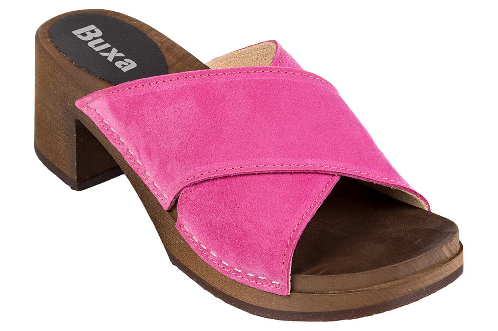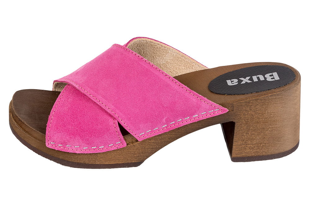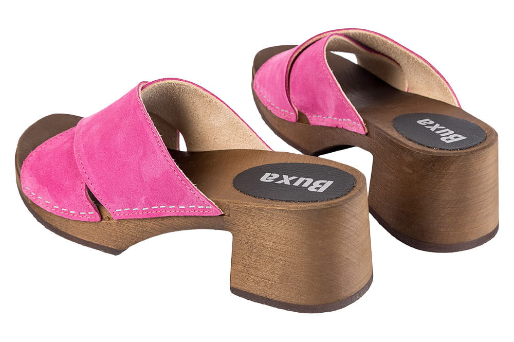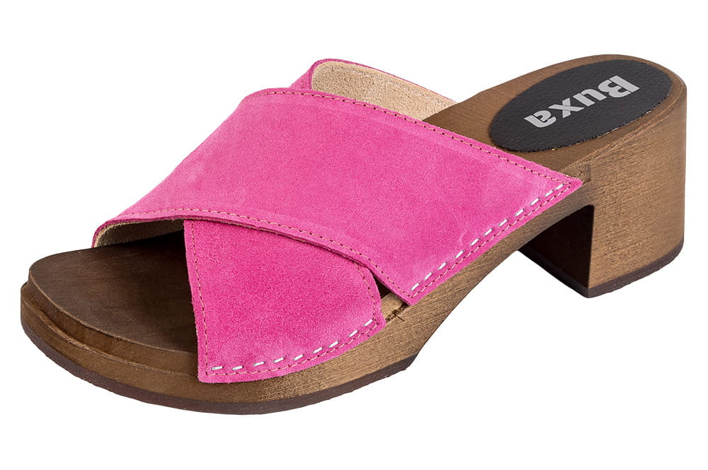 Dámské dřeváky BUXA OS86C – fuchsiové semišové platformové dřeváky