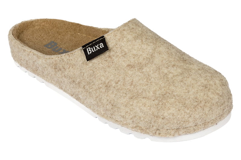 Model BZ150 je navržen pro ženy, které vyžadují pohodlnou a hřejivou domácí obuv vyrobenou z přírodních materiálů. Svršek i vnitřní část jsou tvořeny kvalitním vlněným filcem typu MADRID, jenž je měkký, pevný a přirozeně prodyšný. Filc udržuje teplé a suché mikroklima, protože výborně odvádí vlhkost, umožňuje cirkulaci vzduchu a nepřehřívá chodidlo ani při delším používání. Použitý materiál je ekologický, hypoalergenní a příjemný i pro citlivou pokožku. Otevřený střih v oblasti prstů poskytuje noze volný prostor a zajišťuje maximální pohodlí při domácím nošení. Podešev je plochá, pružná a lehká. Zespodu je opatřena protiskluzovým vzorkem, takže nabízí jistotu i na hladkém povrchu. Uvnitř podešve se nachází měkká vrstva, která přispívá k tlumení nárazů při chůzi a poskytuje chodidlům příjemný došlap. Díky své flexibilitě se pantofle dobře přizpůsobí pohybu a jsou vhodné pro ty, kteří preferují přirozený způsob chůze. Anatomické tvarování vnitřku pantoflí zahrnuje podélnou podporu klenby a jemné vybrání pro patu, což pomáhá udržovat správné postavení nohy a zajišťuje lepší stabilitu. Zvýšené okraje po stranách zabraňují sklouzávání chodidla a poskytují prstům dodatečnou ochranu. Široká a prostorná špička je ideální pro přirozené rozložení prstů, což ocení zejména uživatelé s halluxy, otlaky nebo ti, kdo vyhledávají barefootový pocit při chůzi. Domácí obuv BZ150 je příjemná, nehlučná a díky použitým materiálům i velmi odolná. Délka stélky v cm 36 – 23,5 37 – 24,0 38 – 25,0 39 – 25,5 40 – 26,0 41 – 26,5