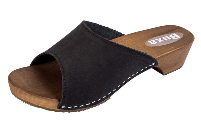 Dřeváky Pantofle kožené W40 černé velurové