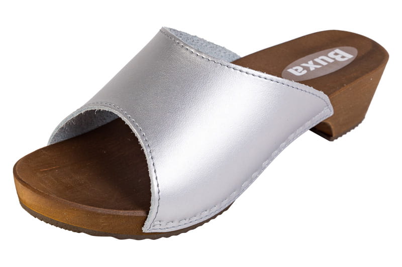 Dřeváky Pantofle kožené W40 stříbrné
