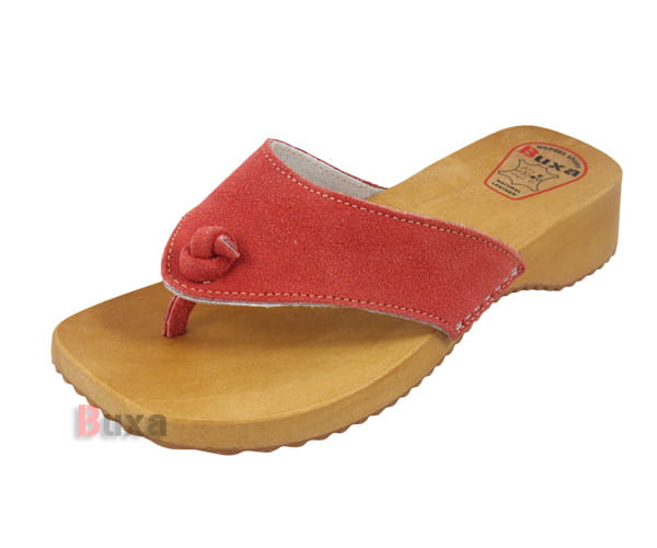 Dřevěné pantofle J1 červené velurové