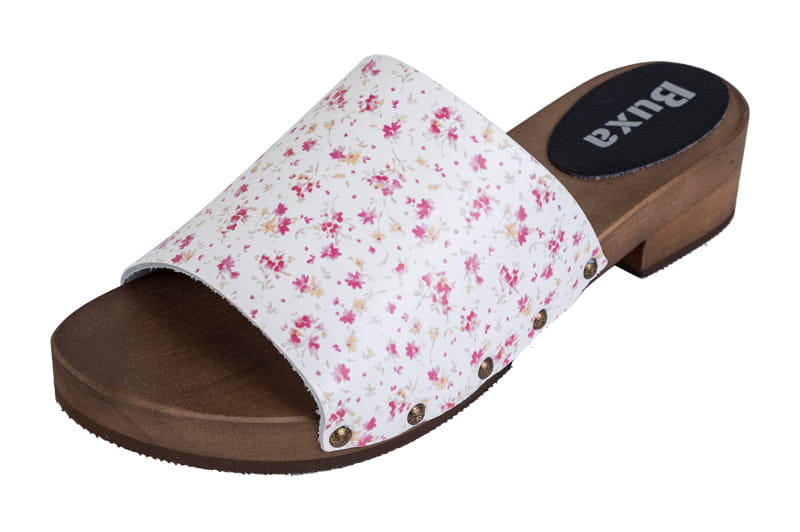 Elegantní dřeváky L-40 Bílé s mini kvítky