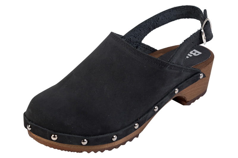 Pohodlné dřeváky pro ženy jsou vyrobeny z přírodní kůže a světlého lipového dřeva. Model má zapínací řemínek na kotníku. Svršek je esteticky připevněn ozdobnými hřebíky. Podešev má konturovaný tvar, jemná podpora podélné klenby chodidla pomáhá korigovat ploché nohy, výřez pro patu stabilizuje správnou polohu paty, eliminuje sklon k deformaci paty. Dřevěná stélka se na rozdíl od kožené při používání nedeformuje, podporuje správné držení těla, tlumí otřesy způsobené chůzí, odlehčuje páteř a klouby, výborně saje pot a neodírá chodidla. Výška podpatku je 5 cm, výška podpatku je 3 cm.