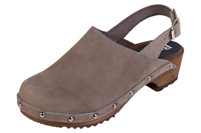 Pohodlné dřeváky pro ženy jsou vyrobeny z přírodní kůže a světlého lipového dřeva. Model má zapínací řemínek na kotníku. Svršek je esteticky připevněn ozdobnými hřebíky. Podešev má konturovaný tvar, jemná podpora podélné klenby chodidla pomáhá korigovat ploché nohy, výřez pro patu stabilizuje správnou polohu paty, eliminuje sklon k deformaci paty. Dřevěná stélka se na rozdíl od kožené při používání nedeformuje, podporuje správné držení těla, tlumí otřesy způsobené chůzí, odlehčuje páteř a klouby, výborně saje pot a neodírá chodidla. Výška podpatku je 5 cm, výška podpatku je 3 cm.