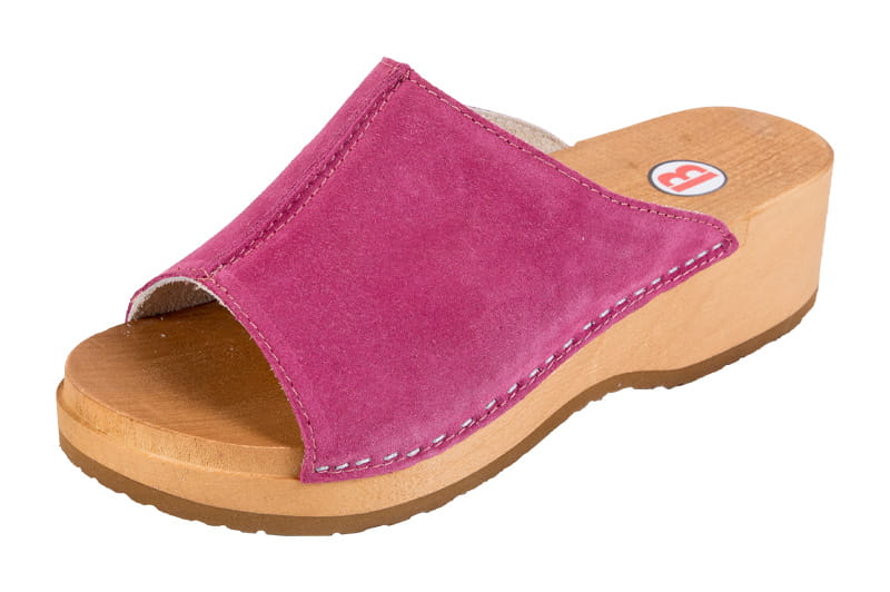Dřeváky Pantofle kožené W40 fuchsiová semiš