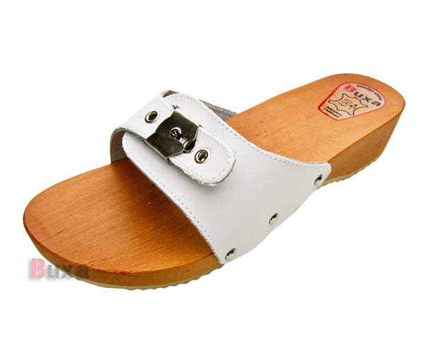 Pokud oceňujete komfort a pohodlí, tak dřeváky B1 jsou model, který splní Vaše požadavky. Dřeváky mají nastavitelný popruh na regulaci velikosti, jsou velmi pohodlné, lehké a zdobené kovovými cvoky.